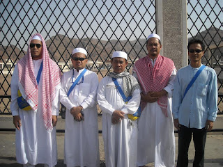 Sama seperti ziarah sebelum ini, lawatan adalah ke jabal thur (kali ni berenti kat sini), padang arafah, jabal rahmah, mina dan Ja'ranah untuk berniat umrah yang kedua. Rancangan nak ke Hudaibiah dibatalkan sebab tak dapat pelepasan kerajaan Arab Saudi untuk melawat ke kilang kelambu kaabah. Sudahnya, untuk umrah ketiga kami pergi ke Tana'em. Kali ni kami mendaki la jugak jabal Rahmah sampai ke puncak. Sepanjang tangga dan di sekeliling batu peringatan di puncak jabal Rahmah ni penuh dengan orag berniaga barang2 cenderahati seperti tasbih, tudung, pakaian dan lain2. Ramai juga peminta sedekah yang kebanyakannya cacat anggota sepanjang tangga ni. Salah seorang tu aku nampak cuma telentang kat atas tangga tanpa tangan dan kaki. Maha suci Allah.